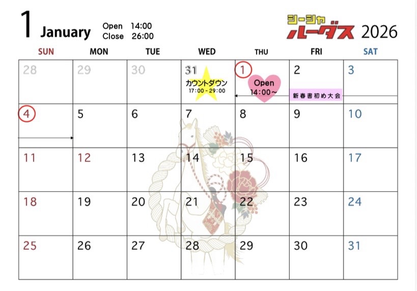 ❄️2026年1月営業日のご案内❄️